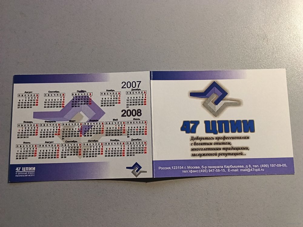 Карманный календарик. ЦПИИ. 2007 год
