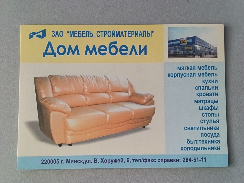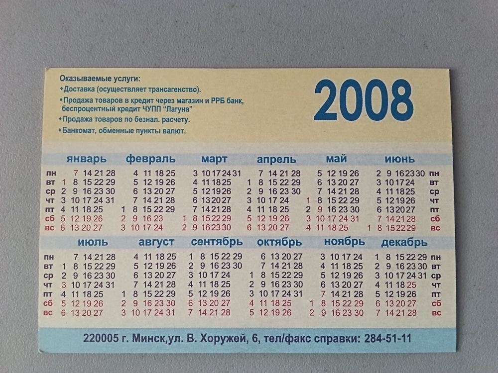 Карманный календарик Дом мебели. Минск. 2008 год