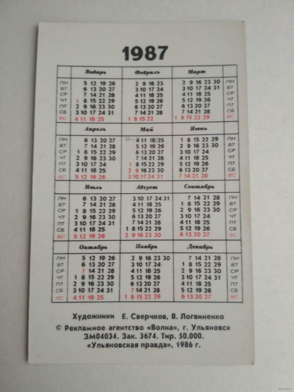 Карманный календарик . ФЭД. 1987 год