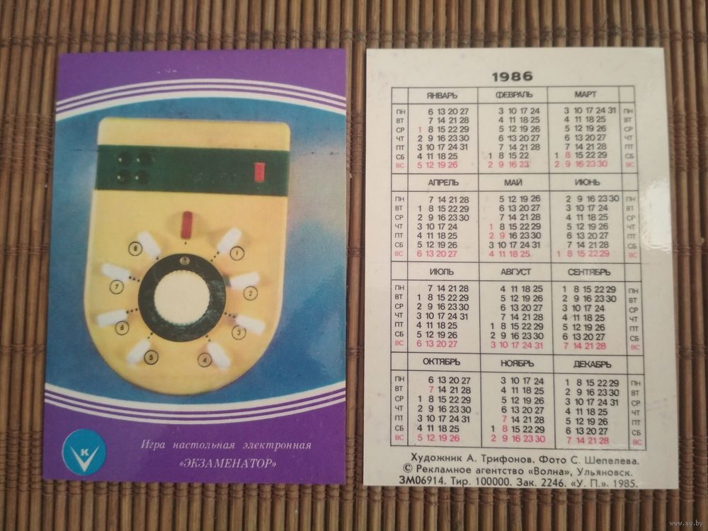 Карманный календарик. Игра настольная Экзаменатор. 1986 год