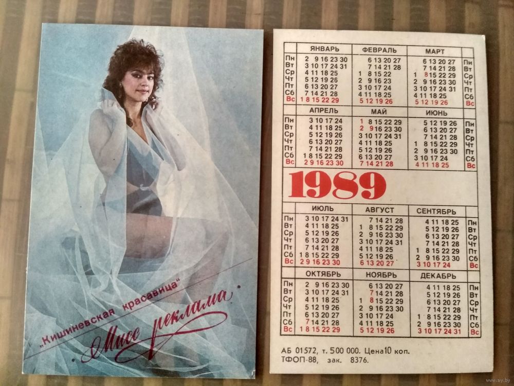 Карманный календарик. Кишинёвская красавица . 1989 год