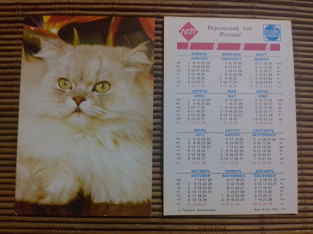 Карманный календарик.Котик.1996 год