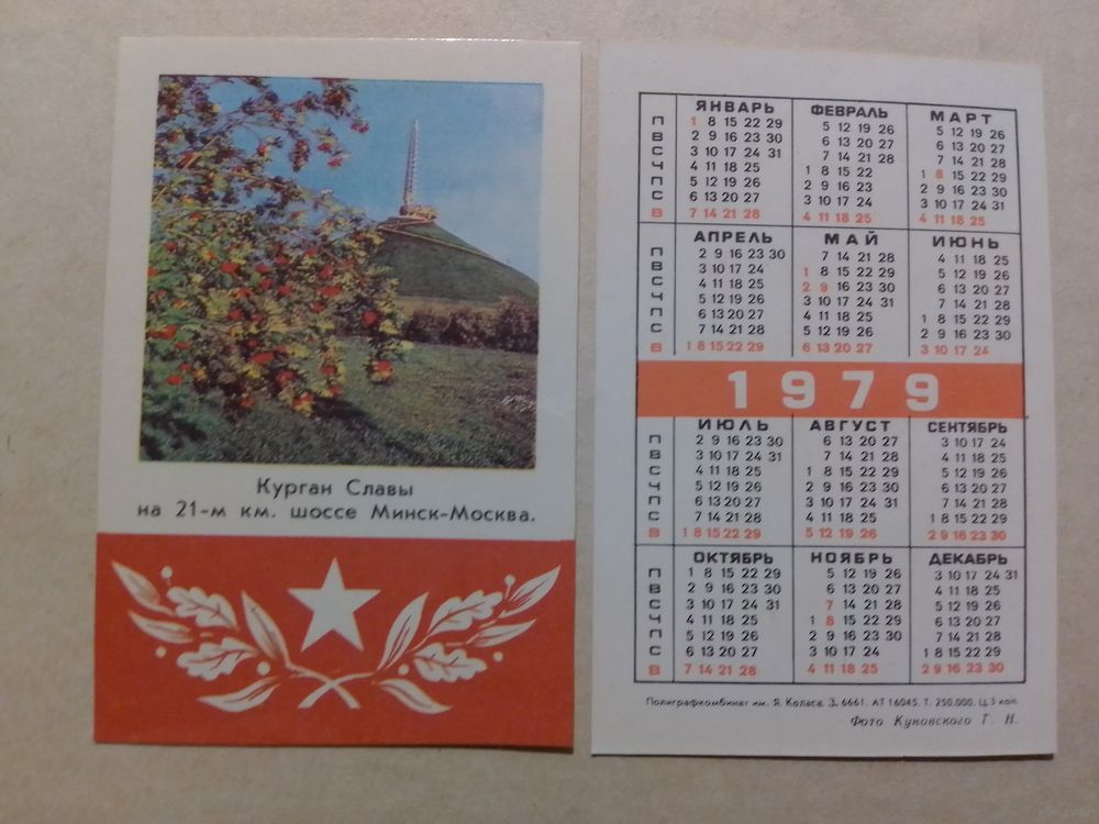 Карманный календарик. Курган Славы . 1979 год