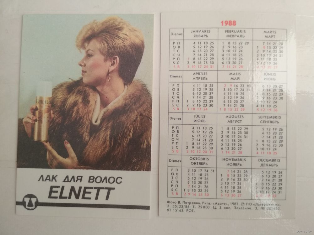 Карманный календарик . Латвбытхим . 1988 год