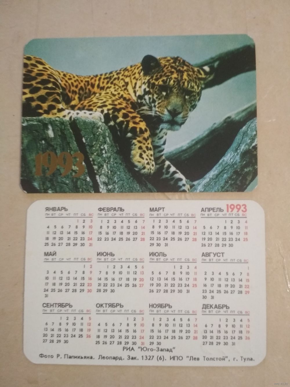 Карманный календарик. Леопард. 1993 год