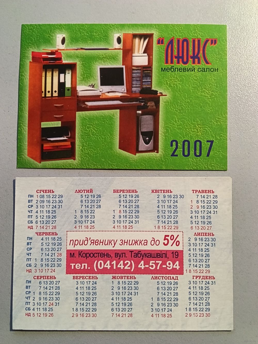Карманный календарик. Мебель. 2007 год