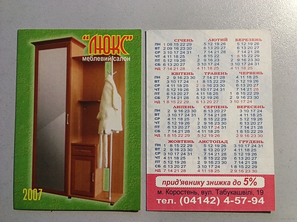 Карманный календарик. Мебель. 2007 год