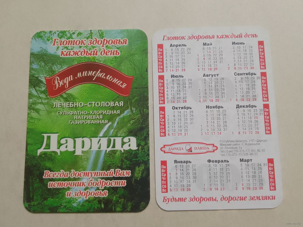 Карманный календарик. Минеральная вода Дарида. 2002 год