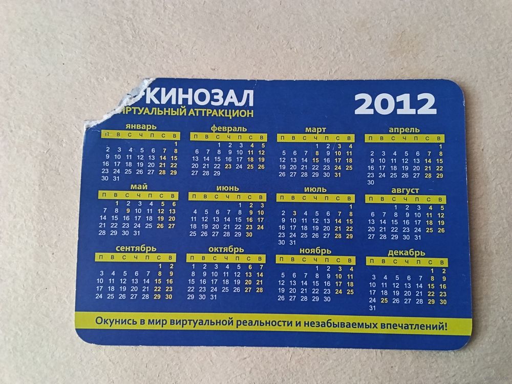 Карманный календарик. Минск. 5Д кинозал. 2012 год