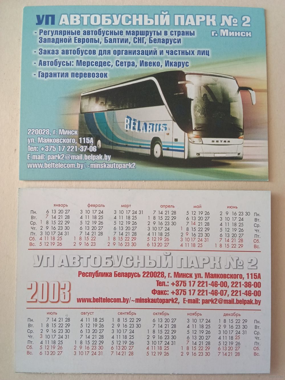 Карманный календарик. Минск. Автобусный парк 2. 2003 год