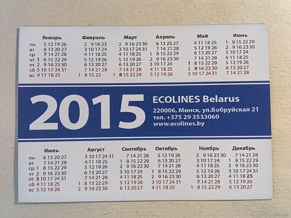 Карманный календарик. Минск. ECOLINES. 2015 год