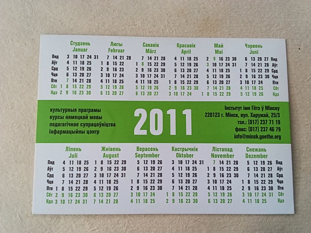 Карманный календарик. Минск. Институт. 2011 год