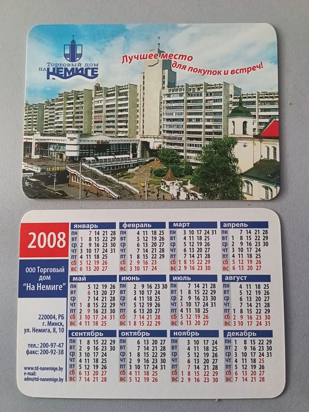 Карманный календарик Минск. ТЦ Немига. 2008 год