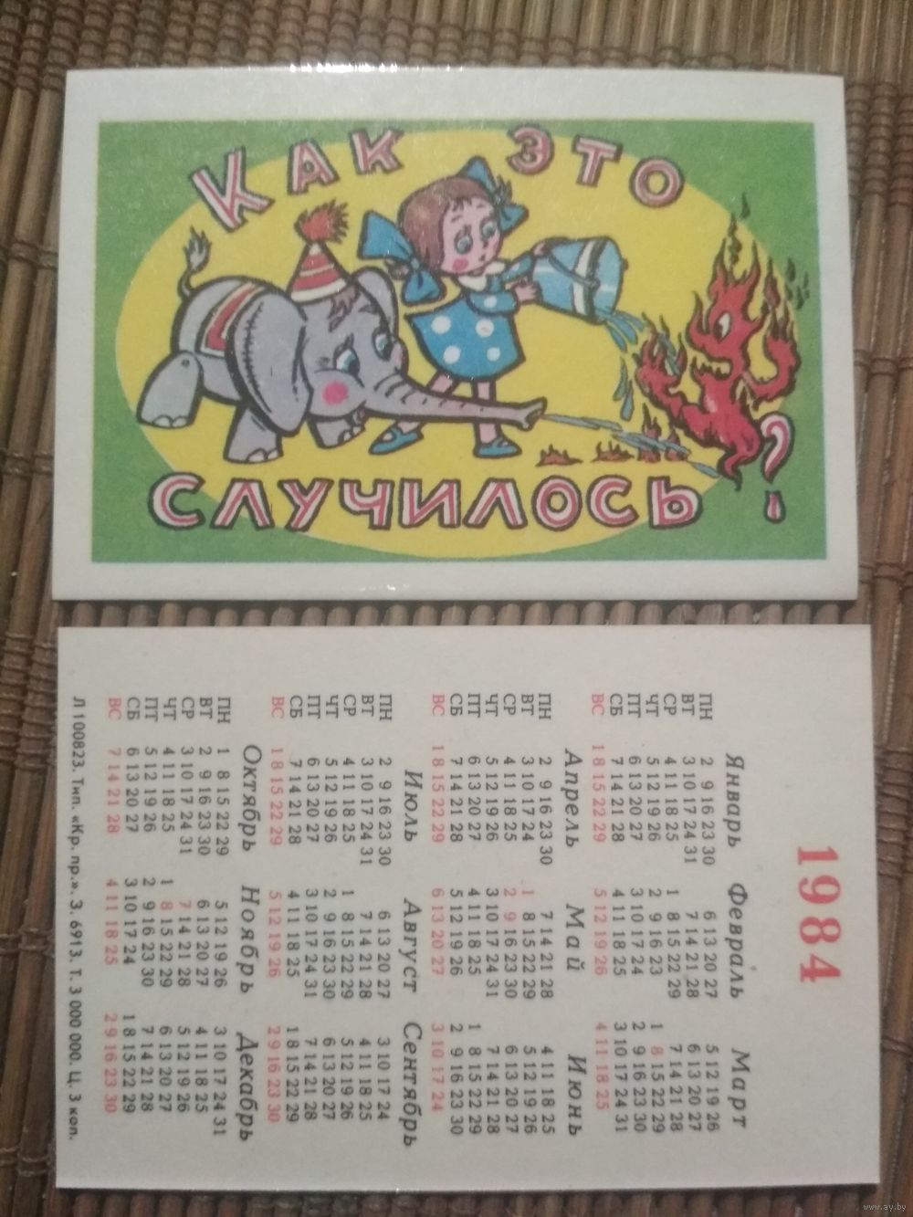 Карманный календарик. Мультфильм Как это случилось ? . 1984 год