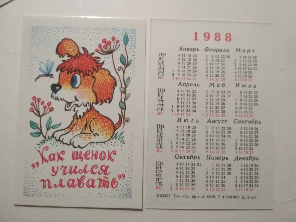 Карманный календарик. Мультфильм Как щенок учился плавать.1988 год