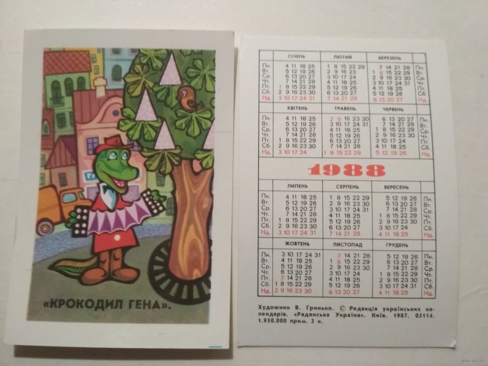 Карманный календарик. Мультфильм Крокодил Гена.1988 год
