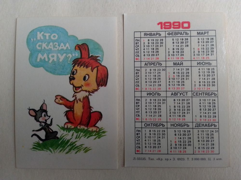 Карманный календарик. Мультфильм Кто сказал мяу ?. 1990 год