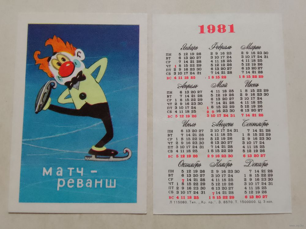 Карманный календарик. Мультфильм Матч-реванш. 1981 год
