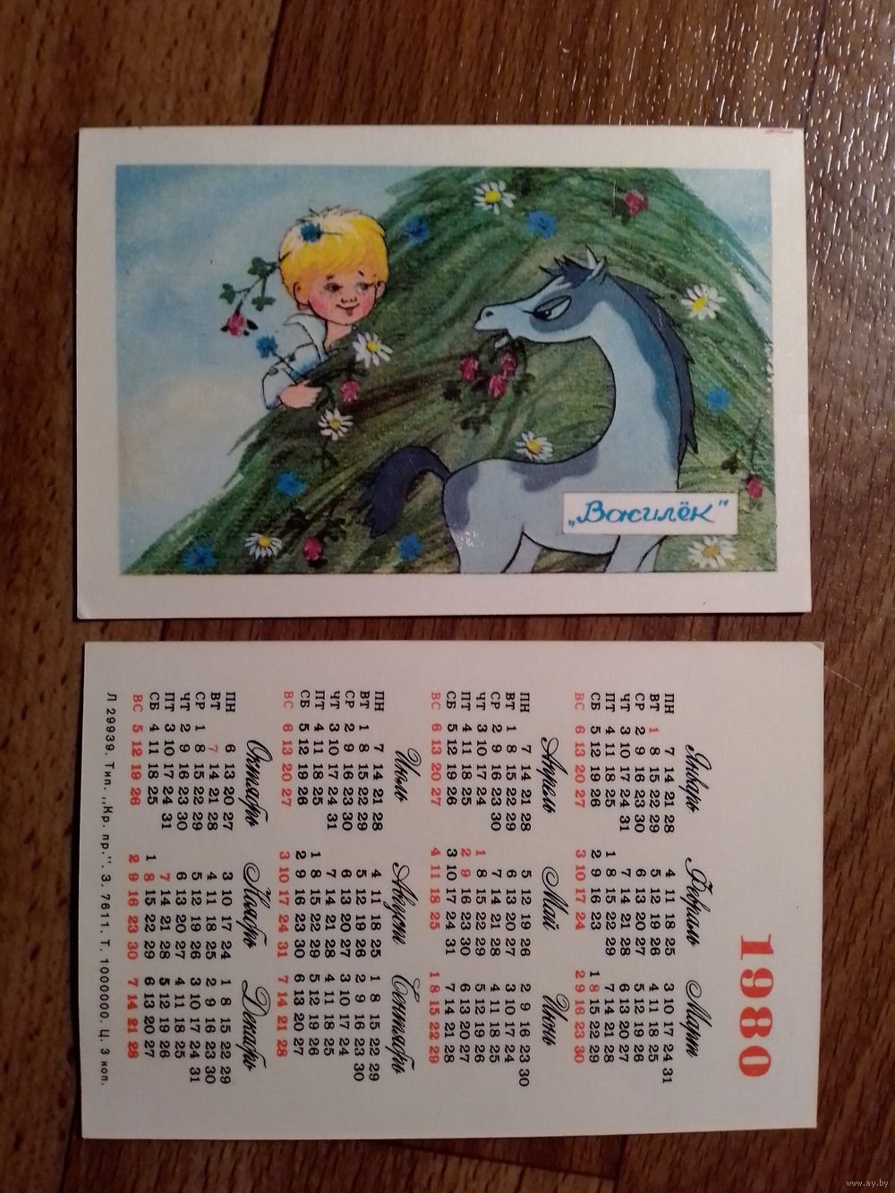 Карманный календарик. Мультфильм Василёк. 1980 год.
