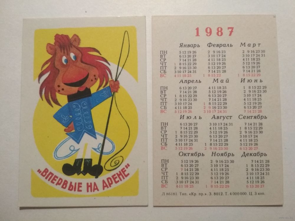 Карманный календарик. Мультфильм Впервые на арене.1987 год