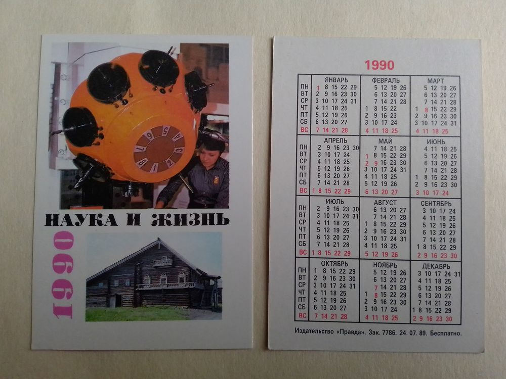Карманный календарик. Наука и жизнь. 1990 год