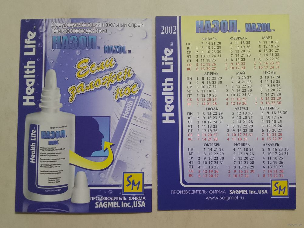 Карманный календарик. Назол. 2002 год