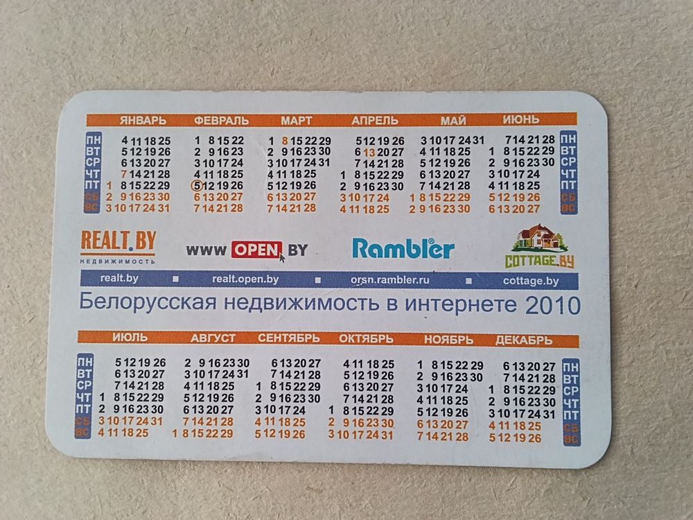 Карманный календарик. Недвижимость. 2010 год