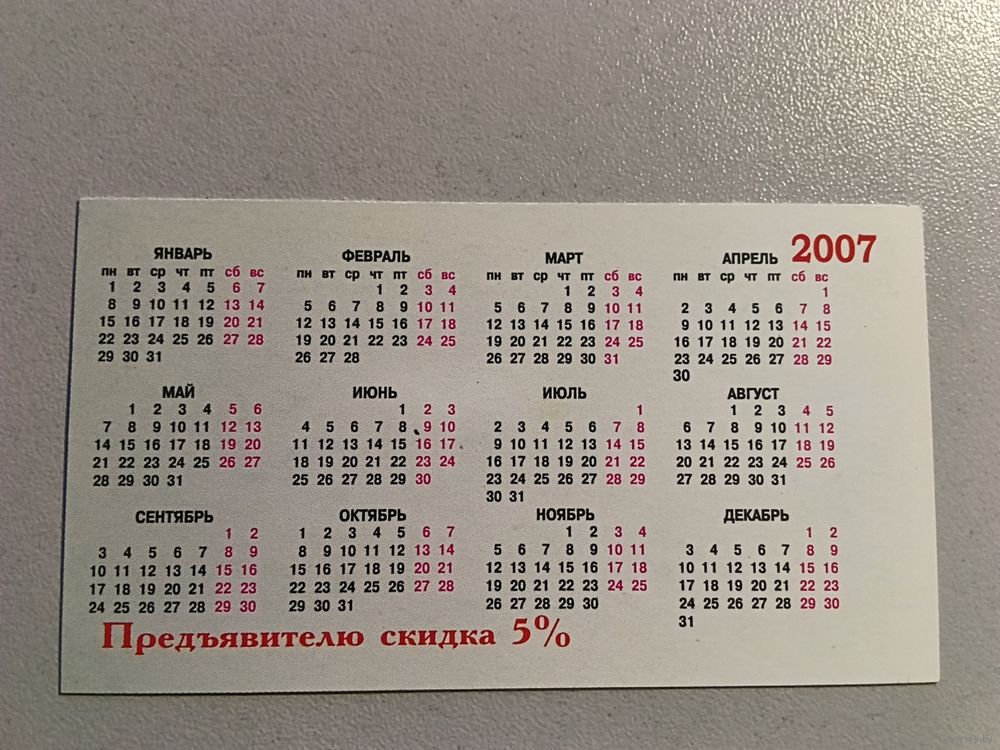 Карманный календарик. Окна. 2007 год