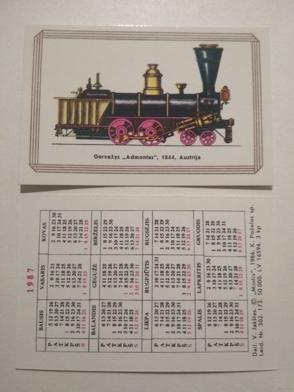 Карманный календарик. Паровоз . 1987 год