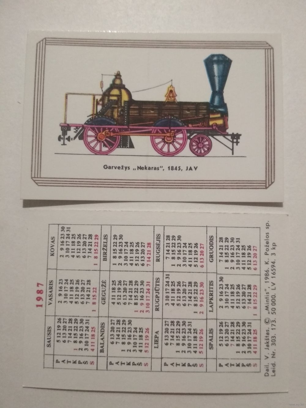 Карманный календарик. Паровоз . 1987 год