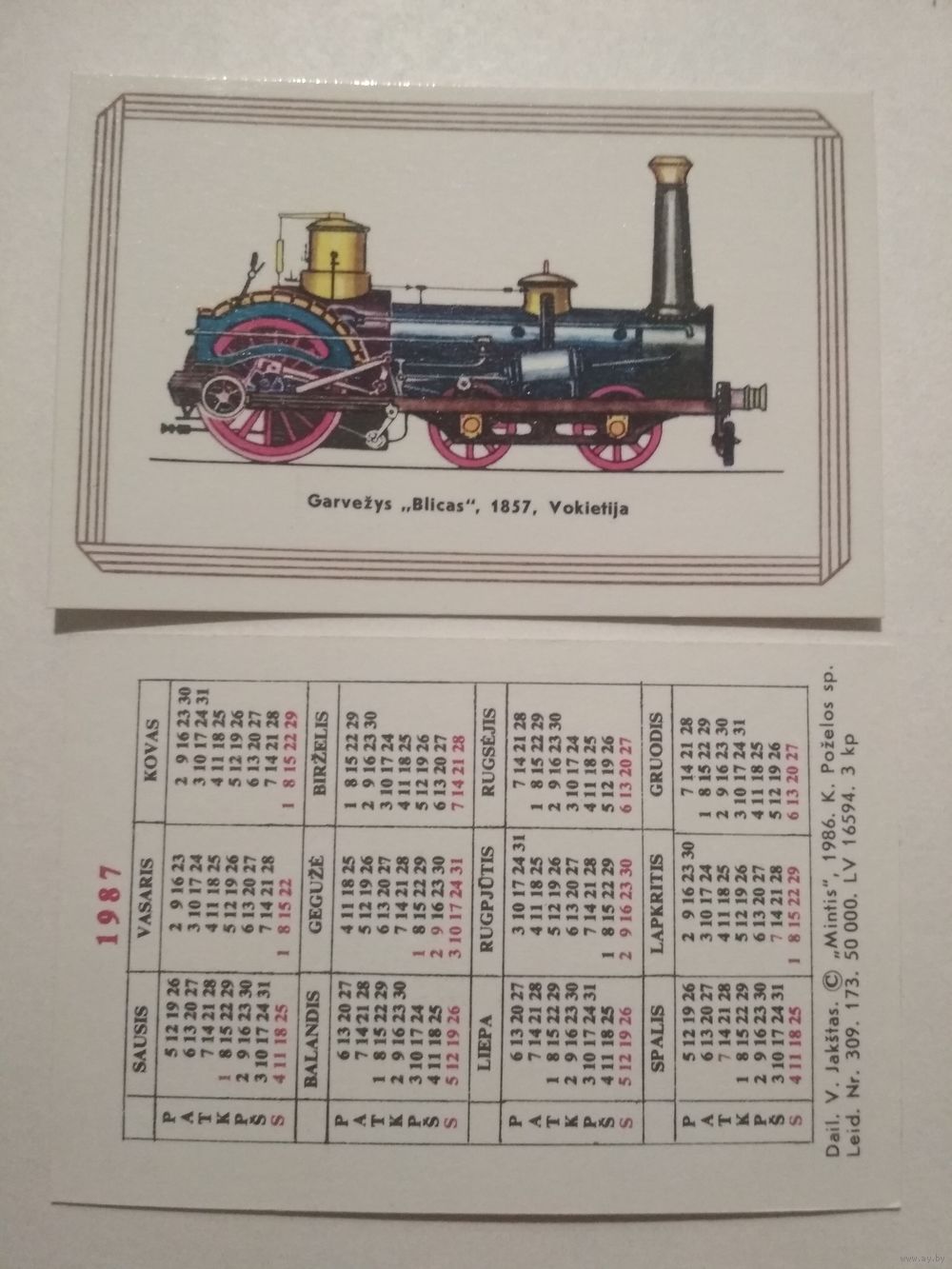 Карманный календарик. Паровоз . 1987 год