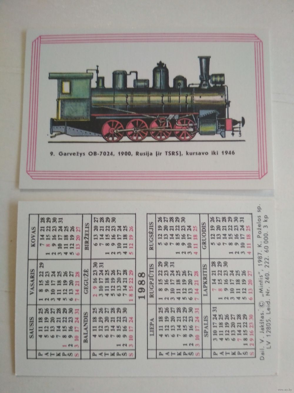 Карманный календарик. Паровозы, Литва. 1988 год