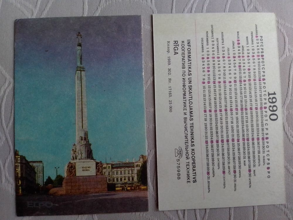 Карманный календарик. Прибалтика.1990 год