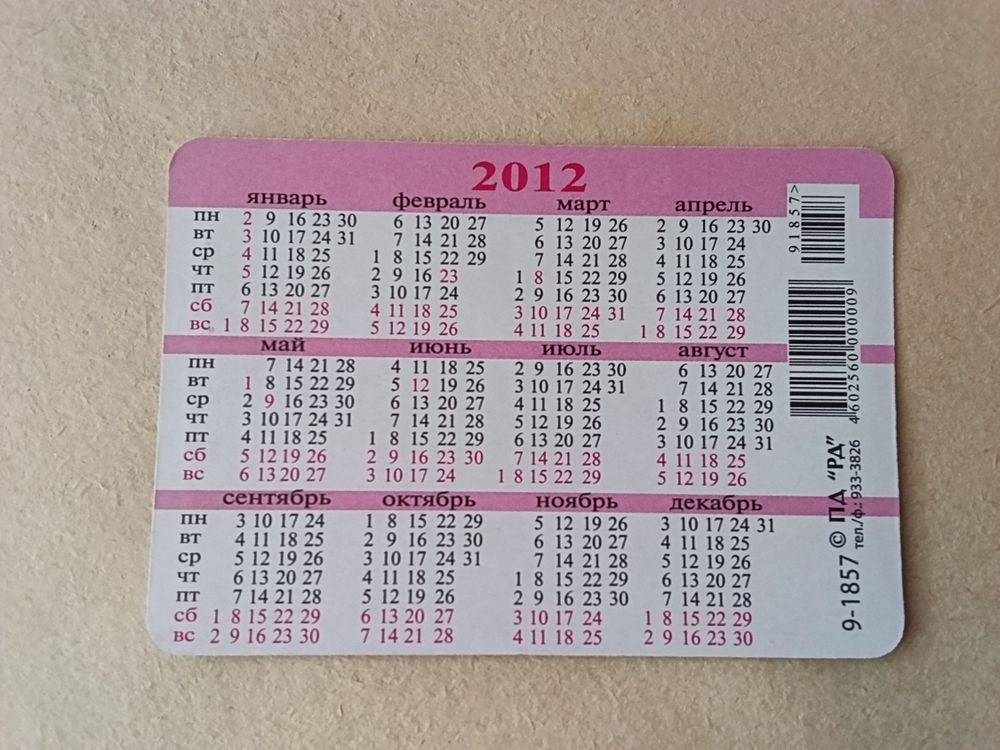 Карманный календарик. Природа. 2012 год