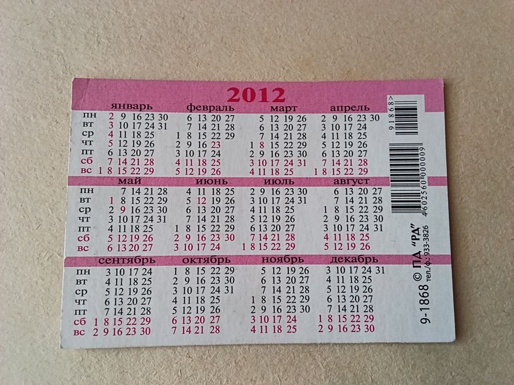 Карманный календарик. Природа. 2012 год