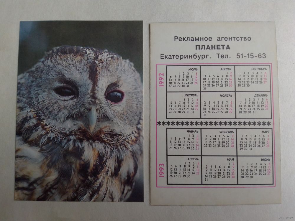 Карманный календарик. Птицы. 1992 год