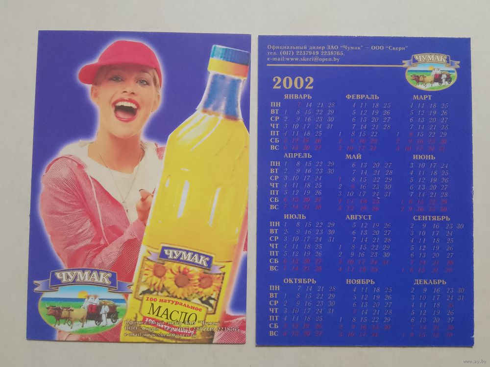 Карманный календарик. Растительное масло Чумак. 2002 год