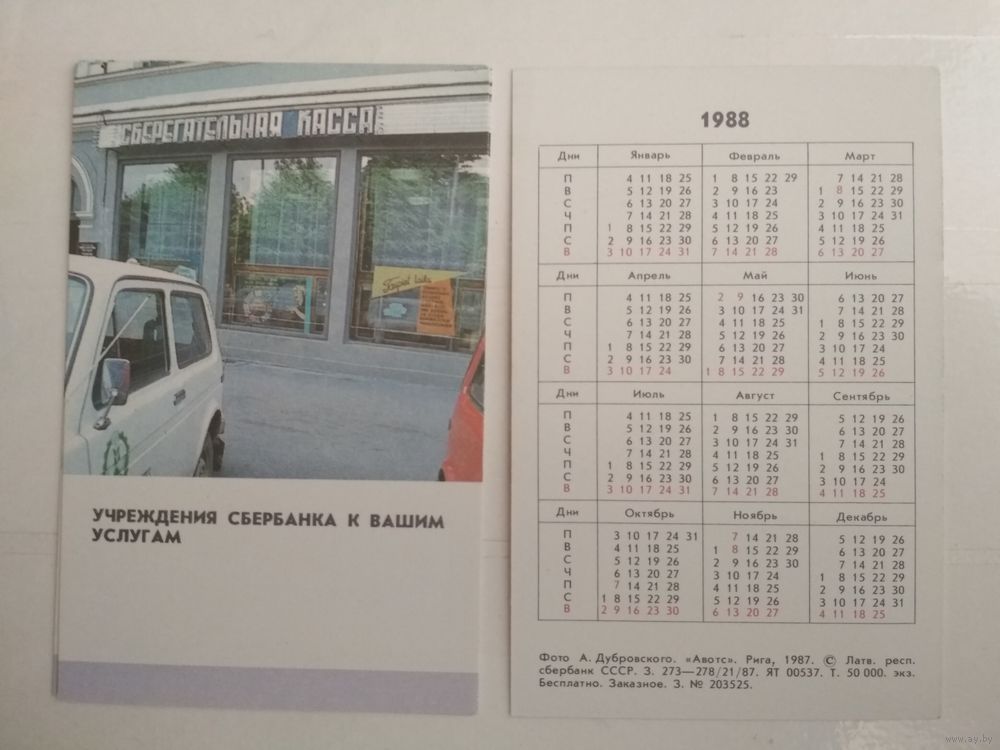 Карманный календарик . Сберкассы СССР . 1988 год