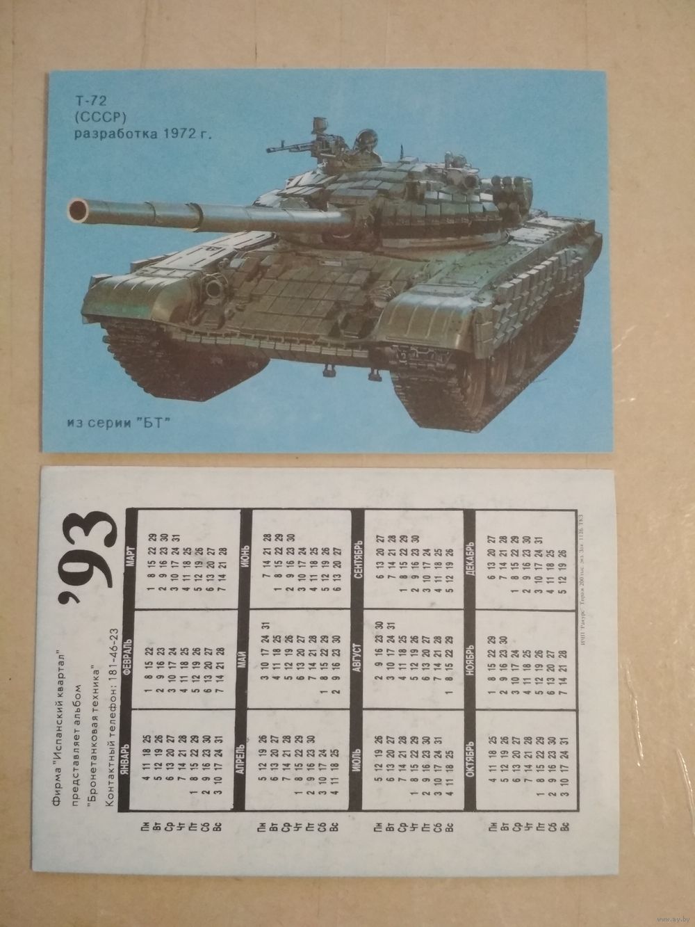 Карманный календарик. Серия Боевой техники.1993 год