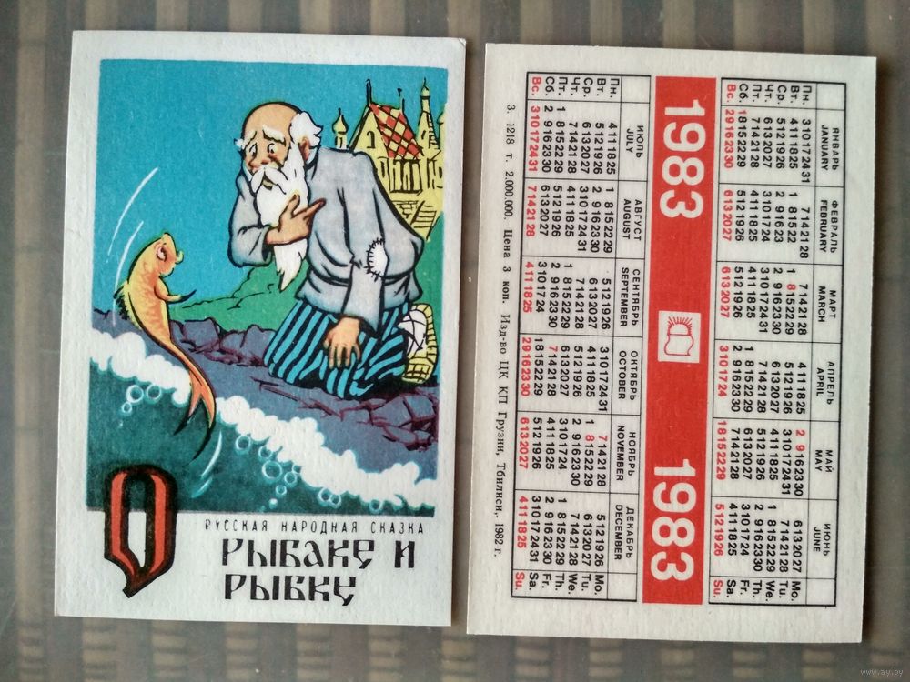 Карманный календарик. Сказка О рыбаке и рыбке. 1983 год