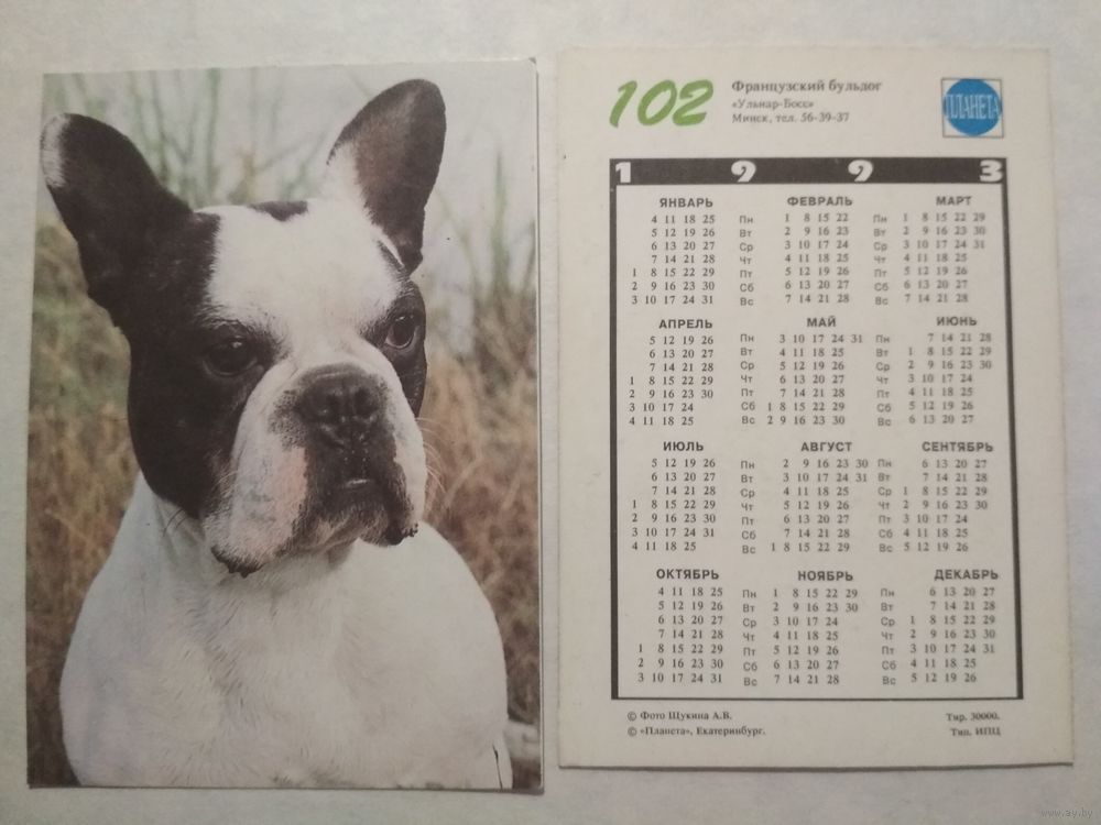 Карманный календарик. Собака.1993 год