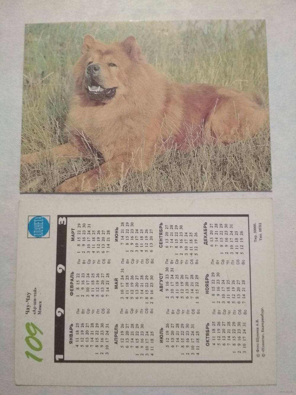 Карманный календарик. Собака.1993 год