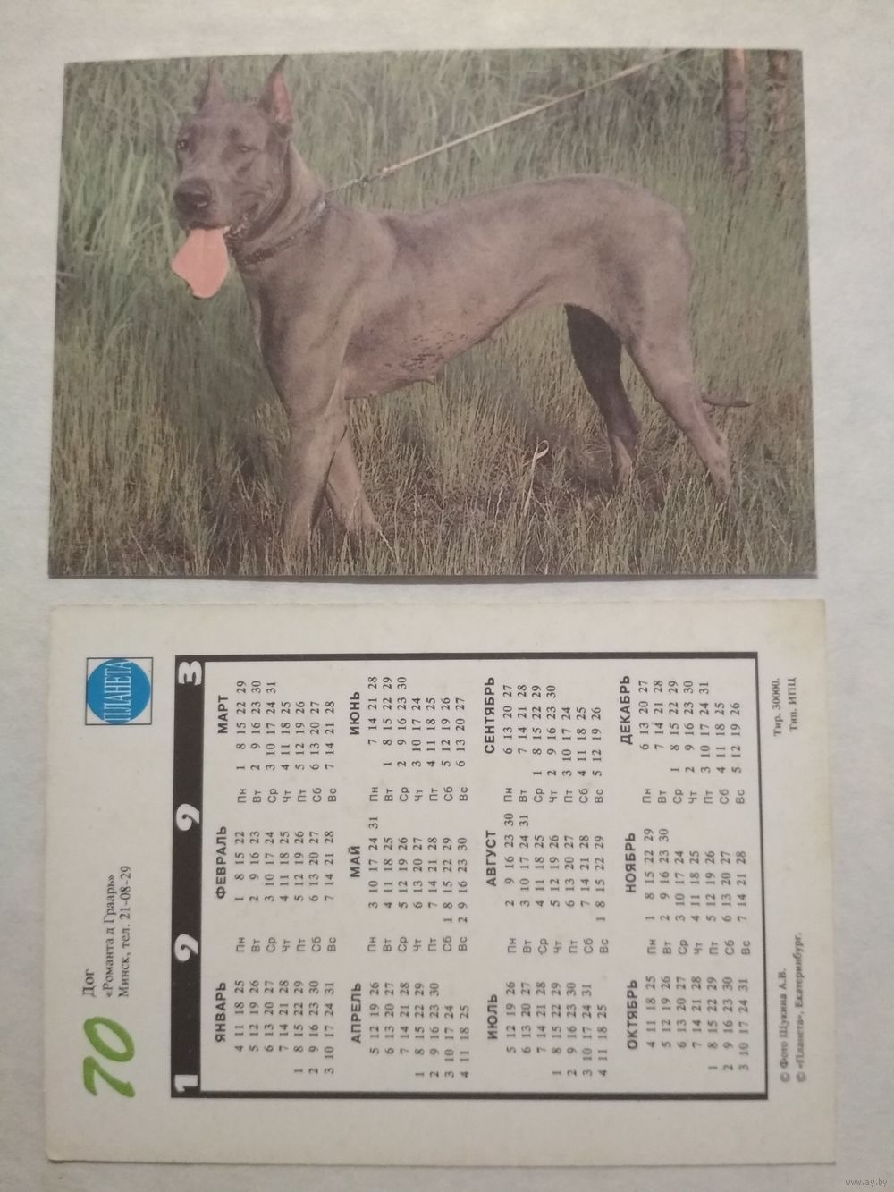 Карманный календарик. Собака.1993 год