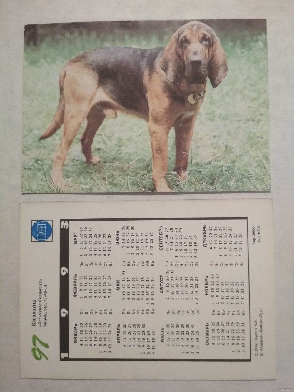 Карманный календарик. Собака.1993 год