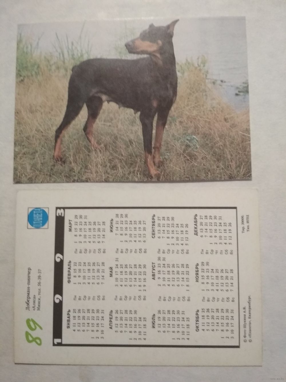 Карманный календарик. Собака.1993 год