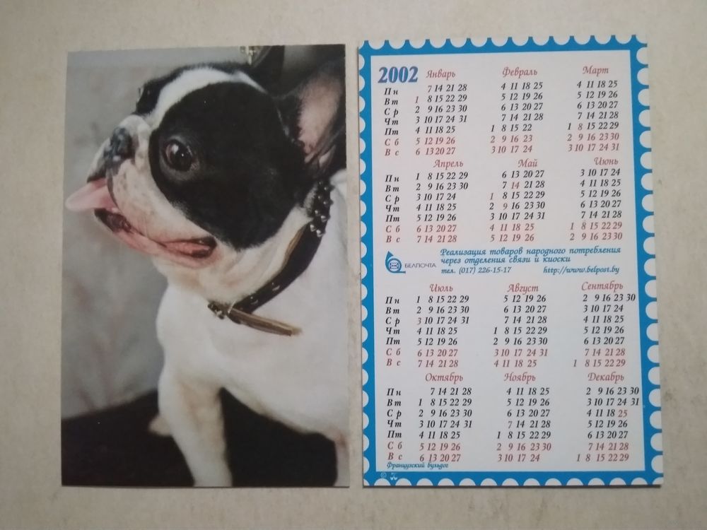 Карманный календарик . Собака . Белпочта. 2002 год