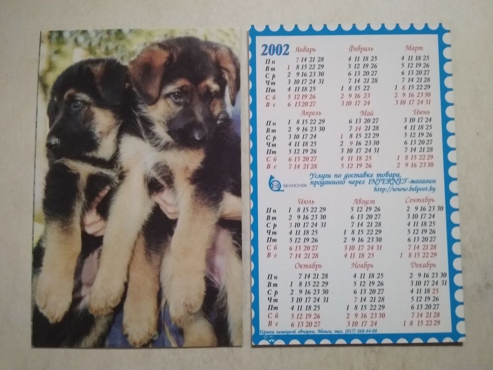 Карманный календарик . Собаки . Белпочта. 2002 год