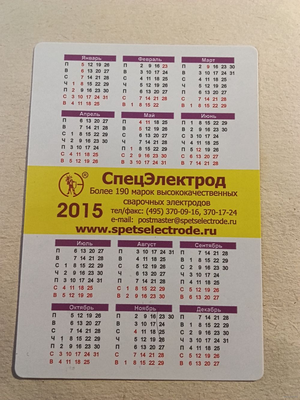 Карманный календарик. СпецЭлектрод. 2015 год