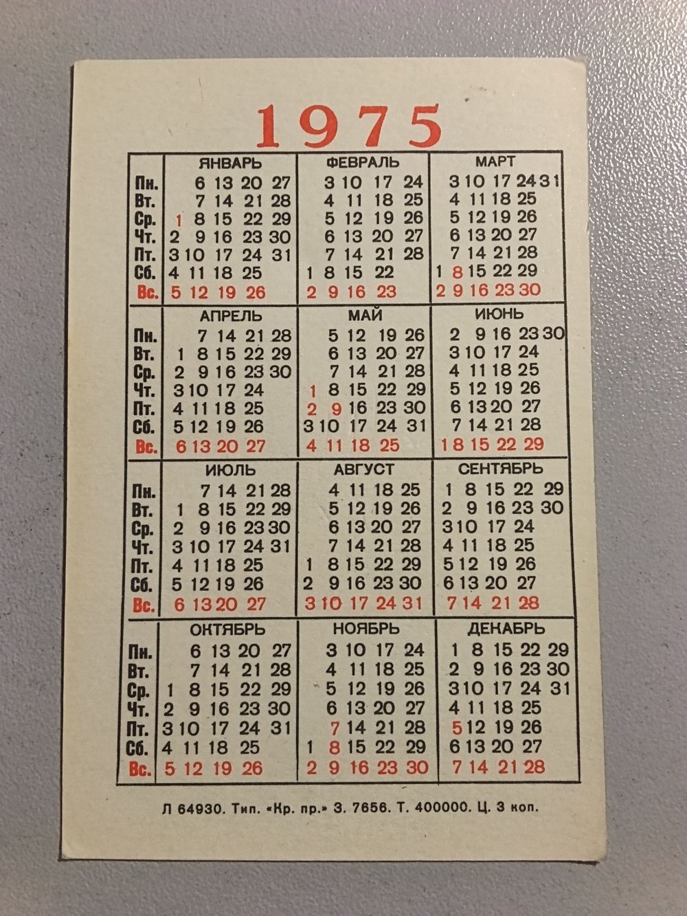 Карманный календарик. Спорт. Парусник.1975 год