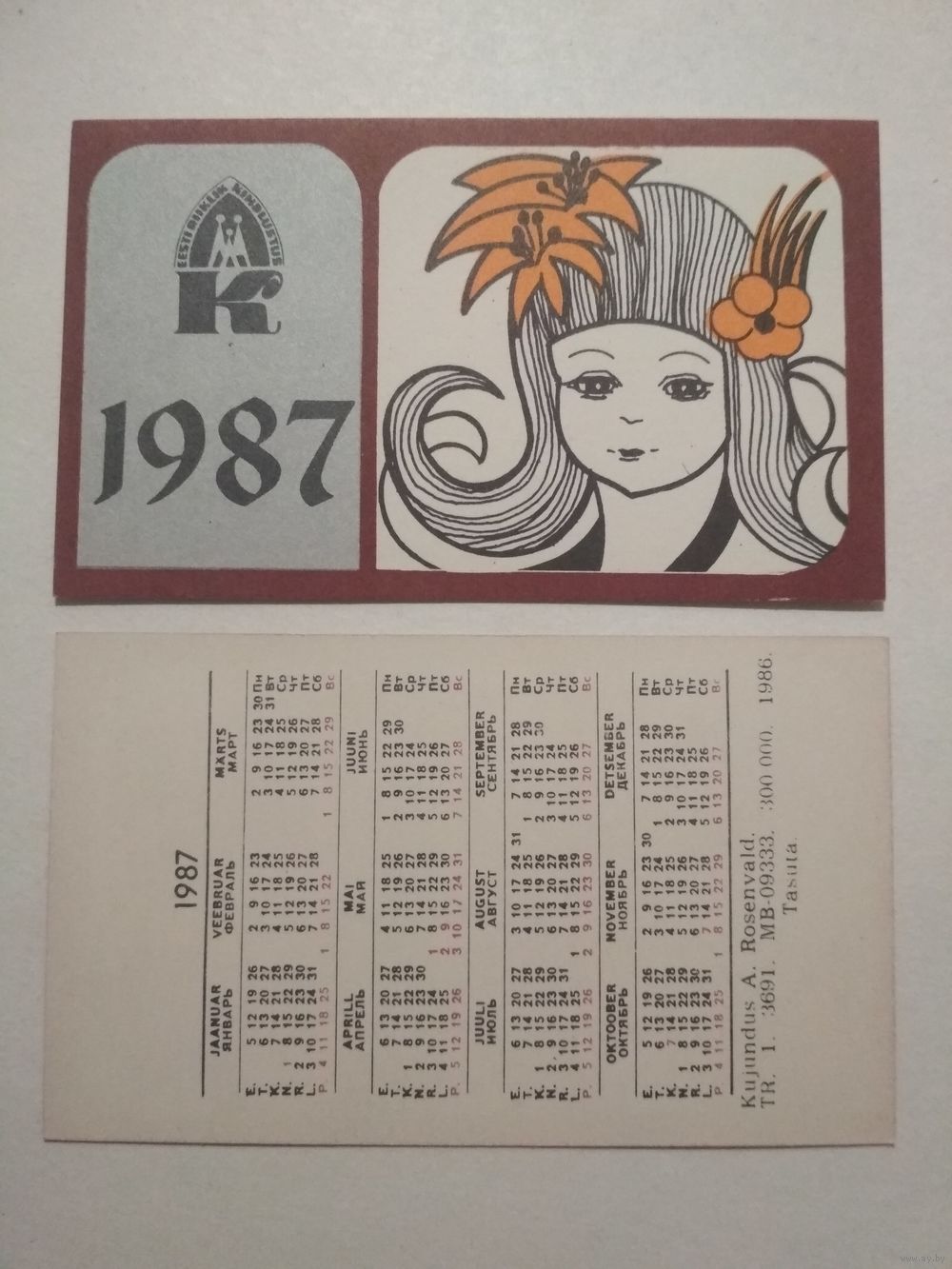 Карманный календарик. Страхование . 1987 год